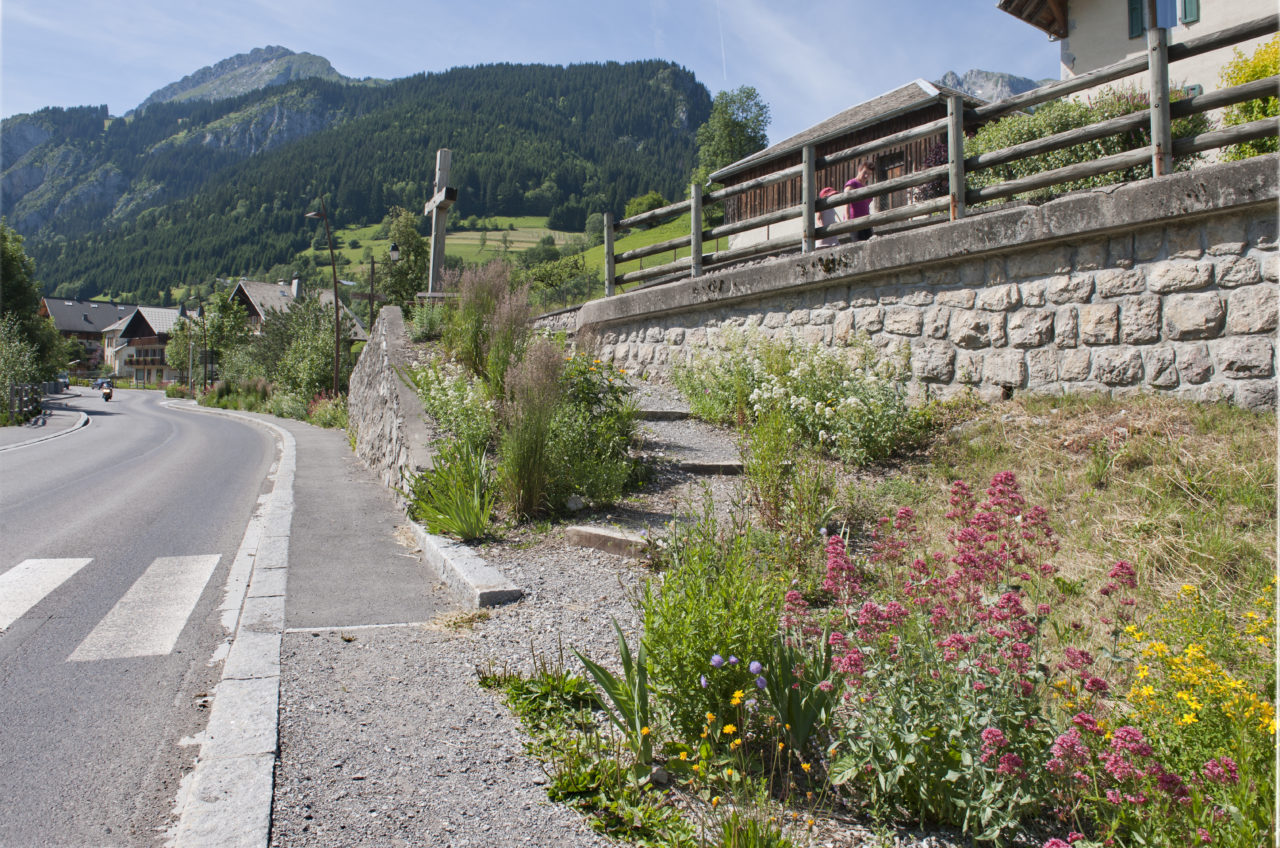 Sur la route des stations, et station elle-même, La Chapelle d’Abondance présente le profil type de ces villages de montagne traversés par des flux touristiques saisonniers. Avec une route départementale majeure, qui le coupe de part en part, le village était soumis aux dangers occasionnés par ce trafic souvent intense et empressé et ses espaces sclérosés par l’omniprésence de la voiture. L’enjeu du projet a consisté à redonner une identité au village en apaisant sa circulation et en redonnant leur juste place aux espaces et aux déambulations piétonnes. Derrière l’évidence des enjeux de requalification et de sécurisation, la mise en oeuvre du paysagiste Den Hengst a pu être complexe, nécessitant un dialogue et une négociation de tous les instants entre municipalité -le maire est lui-même architecte- commerçants et usagers. Car si le développement durable est sur toutes les lèvres, la remise en cause de l’automobile et des usages induits n’est pas encore véritablement passée dans les moeurs. Passé au forceps, ce projet aura encore besoin du nombre des années pour mûrir dans l’esprit des citoyens.