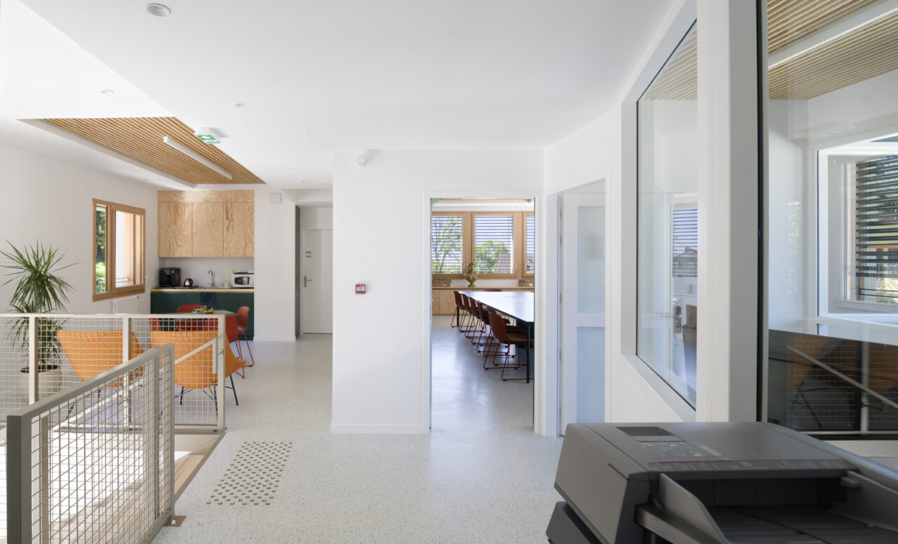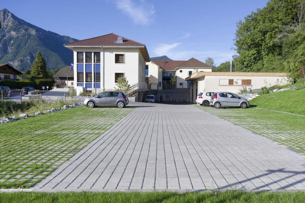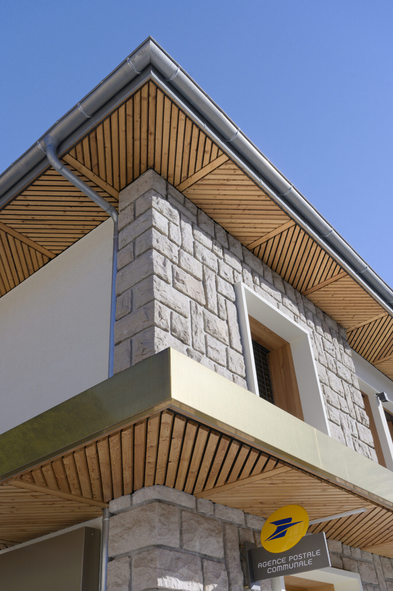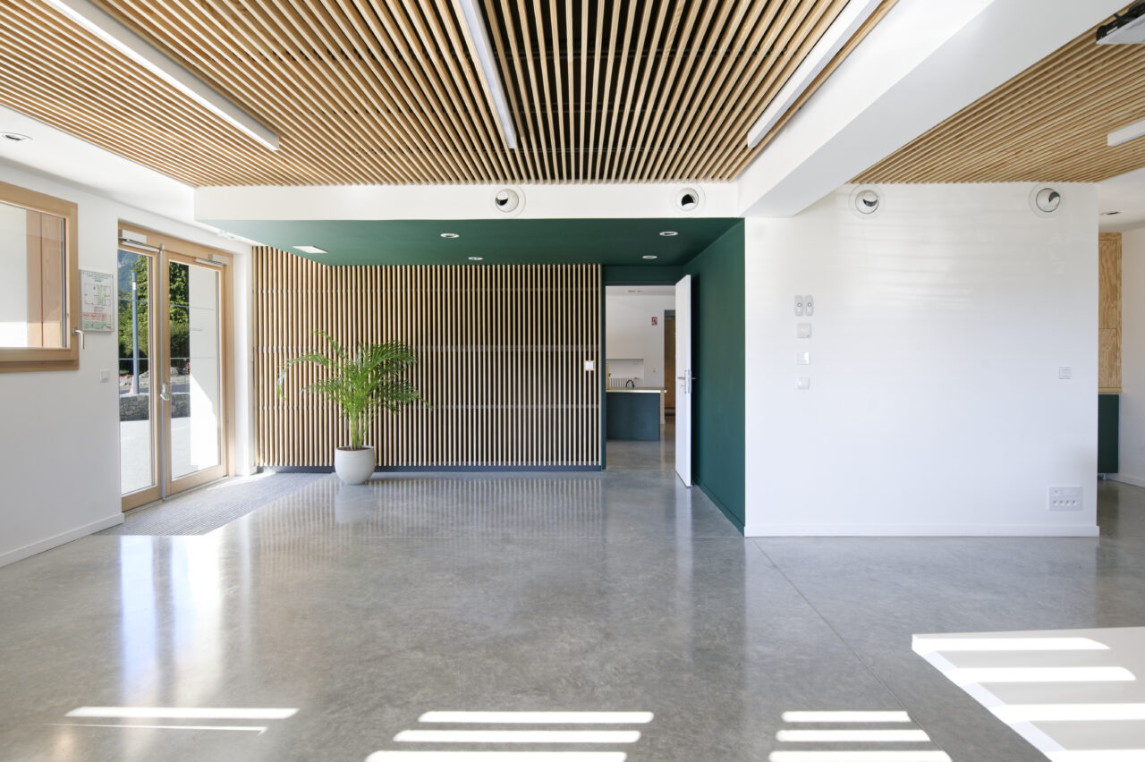 Le col de Châtillon-sur-Cluses est à la fois un seuil géographique entre la vallée de l’Arve et celle du Giffre ainsi qu’un lieu de passage historique, aujourd’hui marqué par l’omniprésence des véhicules. La municipalité s’est bien saisie de cette situation délicate et a cherché comment en faire un réel lieu d’arrêt. Plus encore, il s’agissait de penser la porte d’entrée d’un territoire, celui des montagnes du Giffre. C’est pourquoi la rénovation de la mairie, qui trône en bordure de la route départementale, s’inscrit dans un projet global d’aménagement du col. La mairie et son parvis y retrouvent leur posture de signal, dialoguant avec les éléments architecturaux et paysagers : le pic du Marcelly, le Bargy, tout comme les ruines du château, le clocher de l’église et le bâtiment rénové en face de la mairie. À l’origine, la municipalité ne porte pas vraiment dans son cœur le bâtiment de la mairie, datant des années 1960 et nécessitant une bien meilleure isolation thermique et phonique. Bien que les élus lui reconnaissent certaines qualités, il faudra l’accompagnement du CAUE et le regard aiguisé des architectes de l’agence Silo pour voir le potentiel qu’il recèle, et pour balayer les a priori. Voici une transformation induite par le site, et qui a vocation à s’inscrire dans le temps.